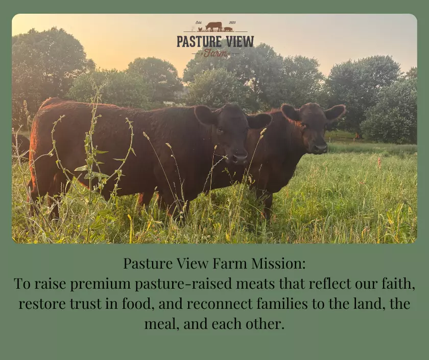 We launched Pasture View Farm in 2023 with one mission in mind, to provide families like yours with the same premium meat our great-grandparents raised 200 years ago: nutrient dense, wholesome, and full of flavor. By using regenerative practices to restore and heal the land and steward it the way God intended it to be.